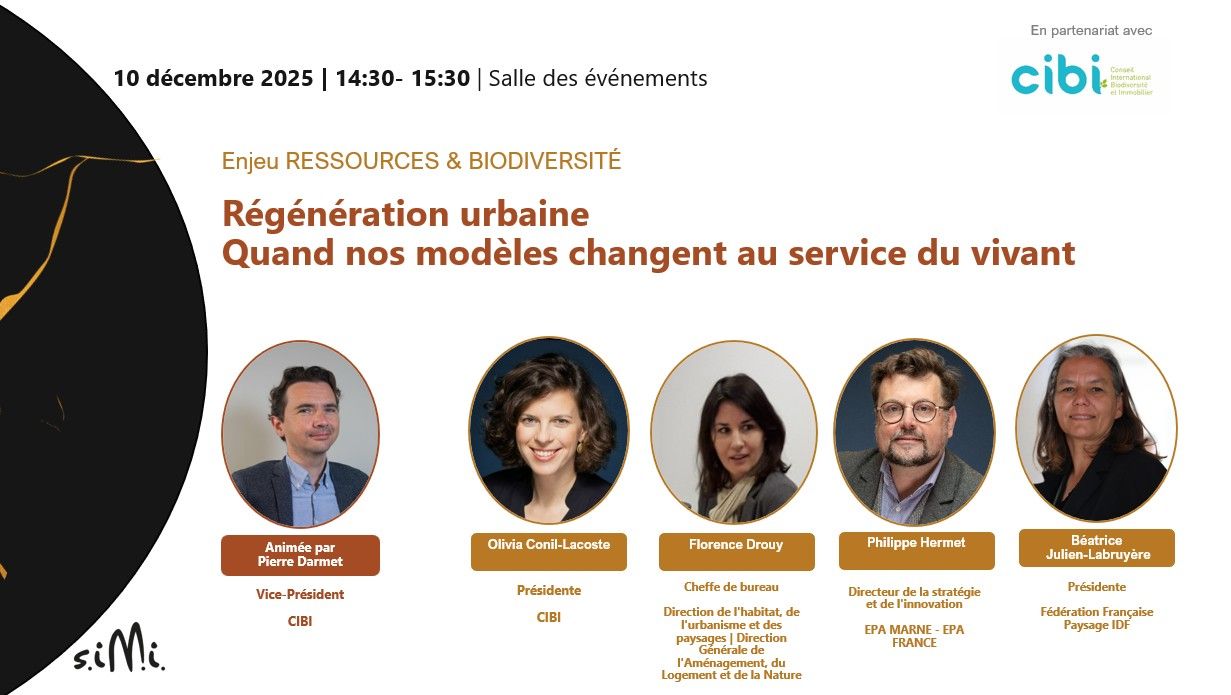 Venez assister à la conférence que vous propose le CIBI – Conseil International Biodiversité Immobilier – au Salon SIMI, Paris Expo Porte de Versailles